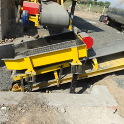 A gathering conveyor driven by a Ac. Motor collects all four size aggregates from above feeders and forwards the same on to Vibrating screen. Dust bin has a vibratory motor on its wall to make wet dust flow easy when wet.